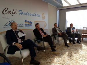 Os diretores da ANTAQ, Mário Povia (geral) e Francisval Mendes, participaram do Café Hidroviário. Destacaram a importância do evento como forma de trocar ideias sobre navegação fluvial e logística. Para Edeon Vaz, diretor executivo do Movimento Pró-Logística, o evento é importante para reunir os hidroviários, que serão os multiplicadores dos assuntos de interesse do transporte fluvial.