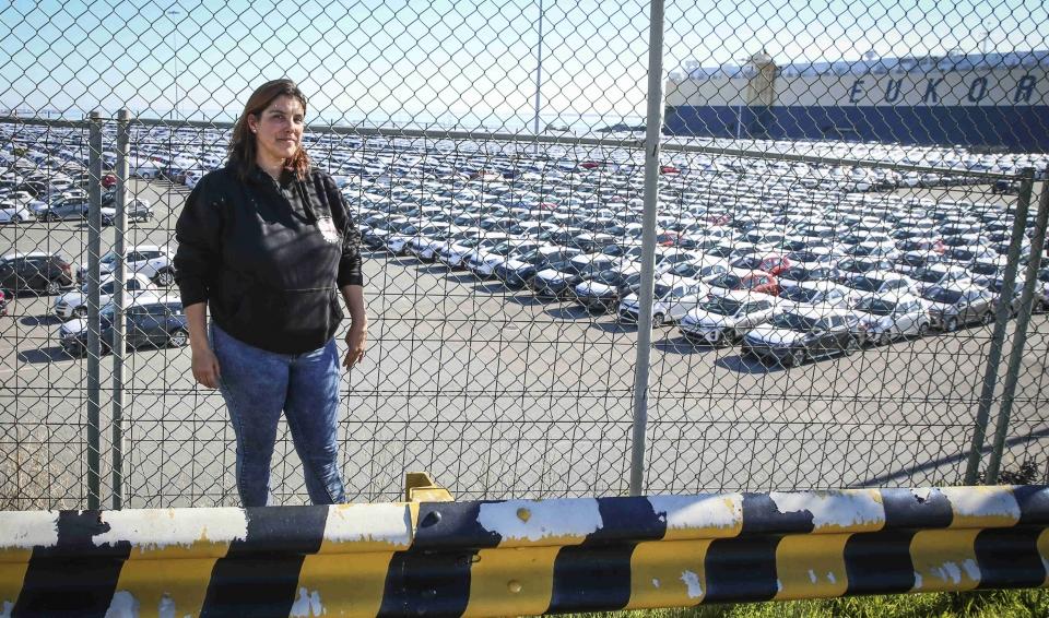 Carla Ribeiro trabalha há nove anos no Porto de Setúbal. Esteve na luta dos estivadores precários. É a primeira estivadora da família