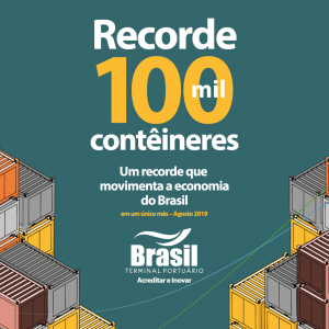 Brasil Terminal Portuário ultrapassa 100.000 contêineres movimentados em um único mês