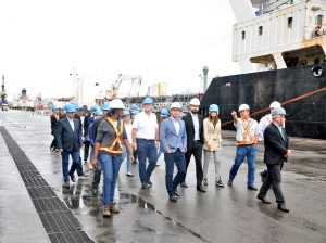 Após coffee break, o grupo percorreu as instalações do Cais Comercial de Vitória e dos terminais de Capuaba, Atalaia e Login/TVV, além de visitar o centro de controle de operações do VTMIS. Diretores da CODESA presentes, além de Castiglioni: Bruno Fardin, Jean Duque, João Cunhalima.