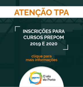 As inscrições para os Cursos remanescentes referentes ao PREPOM 2019 (em andamento) e 2020, passarão a ser realizadas pelo site do OGMO Santos, no Menu: TPA/ Pré-Inscrição de Cursos, do período de 01 a 31/03/2020. O acesso à rede interna deve ser feito pelo TPA utilizando a sua senha pessoal da internet através do site: www.ogmo-santos.com.br.