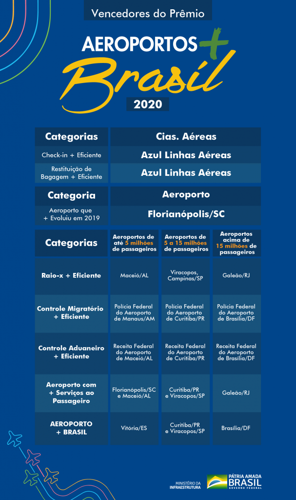 Entre as companhias aéreas, a Azul foi a grande vencedora, pelo segundo ano consecutivo, do prêmio do Ministério da Infraestrutura