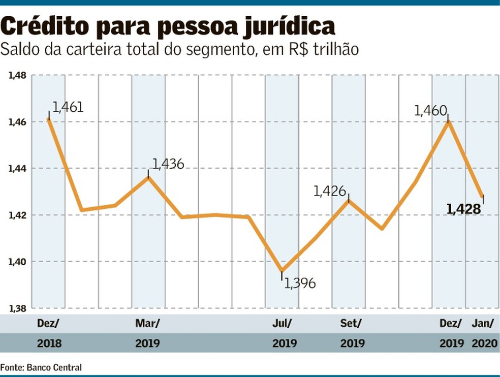 Já as grandes empresas têm recorrido com mais frequência ao mercado de capitais, o que limita a expansão do crédito bancário, diz Isabela Tavares, economista da Tendências. A consultoria projeta alta de 3,2% na carteira de pessoa jurídica neste ano, após recuo de 0,1% em 2019.