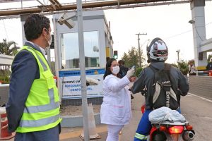 No último sábado (4), a SCPAR Porto de Imbituba, empresa pública que administra o Complexo Portuário de Imbituba, assumiu a gestão dos postos de monitoramento de saúde frente à COVID-19, tanto nas duas portarias de acesso ao porto, quanto nos acessos ao município de Imbituba (acesso Sul, Norte e ponte Ibiraquera). As ações vinham sendo realizadas desde a segunda quinzena de março pelo Órgão Gestor de Mão de Obra (OGMO Imbituba), nas portarias do porto, por meio de um convênio entre a intersindical e uma escola de enfermagem e, nos acessos à cidade, pela Prefeitura Municipal de Imbituba. O investimento da SCPAR Porto de Imbituba neste auxílio emergencial de medidas de proteção ao coronavírus é de cerca de 180 mil reais e tem duração prevista de um mês, podendo ser prorrogado enquanto durar a situação de emergência de saúde. A iniciativa conta com o apoio da Defesa Civil e do Corpo de Bombeiros.