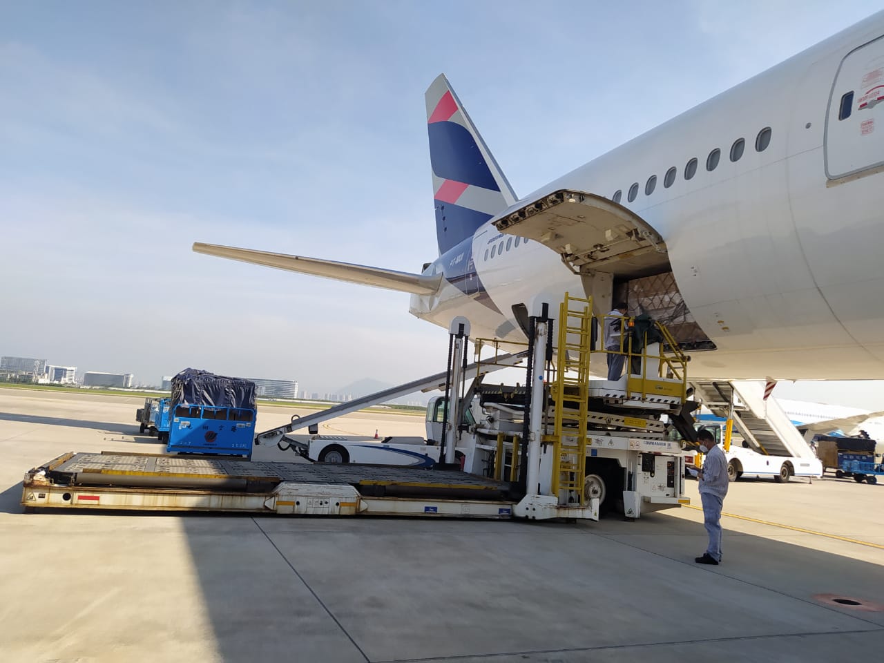 O voo JJ9555 proveniente de Xiamen (China), aterrissou no Aeroporto Internacional de Guarulhos/SP às 3h35 desta segunda, após escala em Amsterdã (Holanda). A carga de 9 milhões de máscaras cirúrgicas de três camadas foi transportada em aeronave de passageiros Boeing-777. Além do porão da aeronave, a cabine foi adaptada para receber as 4.494 caixas do produto, que será distribuído pelo Ministério da Saúde entre as 27 unidades da federação.