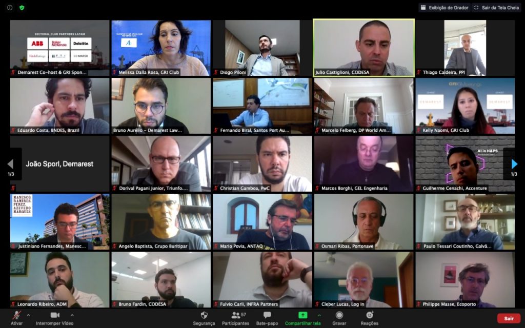 O eMeeting foi conduzido pelo advogado Bruno Aurélio e teve ainda como debatedores: Diogo Piloni, secretário Nacional de Portos e Transportes Aquaviários do Ministério da Infraestrutura; Fernando Biral, presidente do Porto de Santos; Thiago Caldeira, secretário do Programa de Parcerias e Investimentos (PPI); e Eduardo Costa, do Banco Nacional do Desenvolvimento (BNDES).