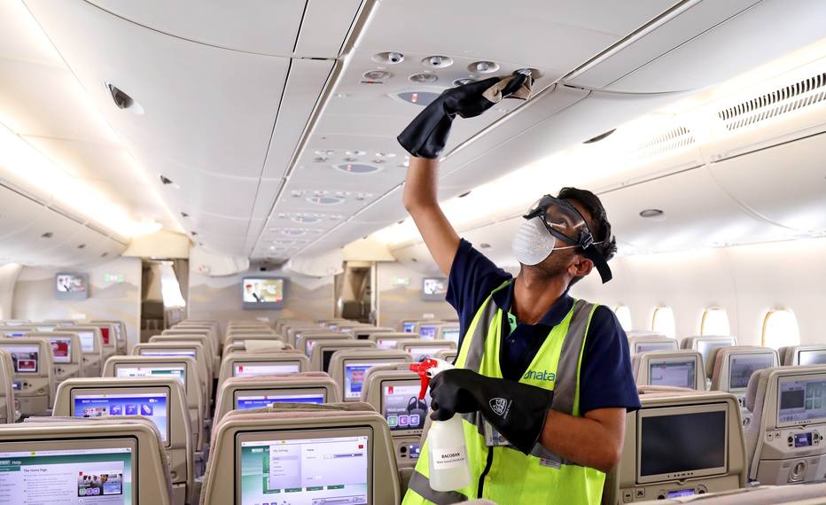 Maioria das companhias intensificou as operações de limpeza e desinfecção de aeronaves Foto: Emirates Airline/Handout via Reuters