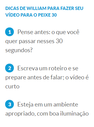William Valadão, fundador do Peixe 30, explica que o candidato pode seguir e ser seguido por profissionais e que dentro do aplicativo existem duas áreas: onde o candidato se apresenta e pode subir o currículo em PDF, adicionar outras redes sociais, colocar seu site; e onde posta seus conteúdos, além de poder interagir, curtir e compartilhar.
