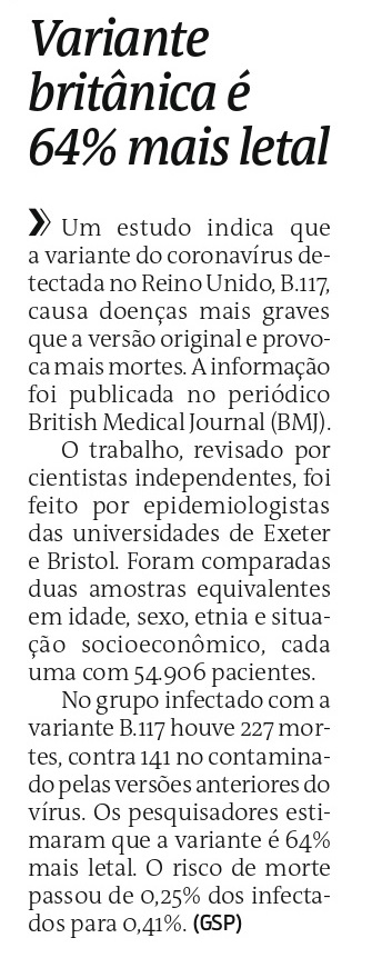 Fonte: Diário do Litoral (11 de março de 2021)