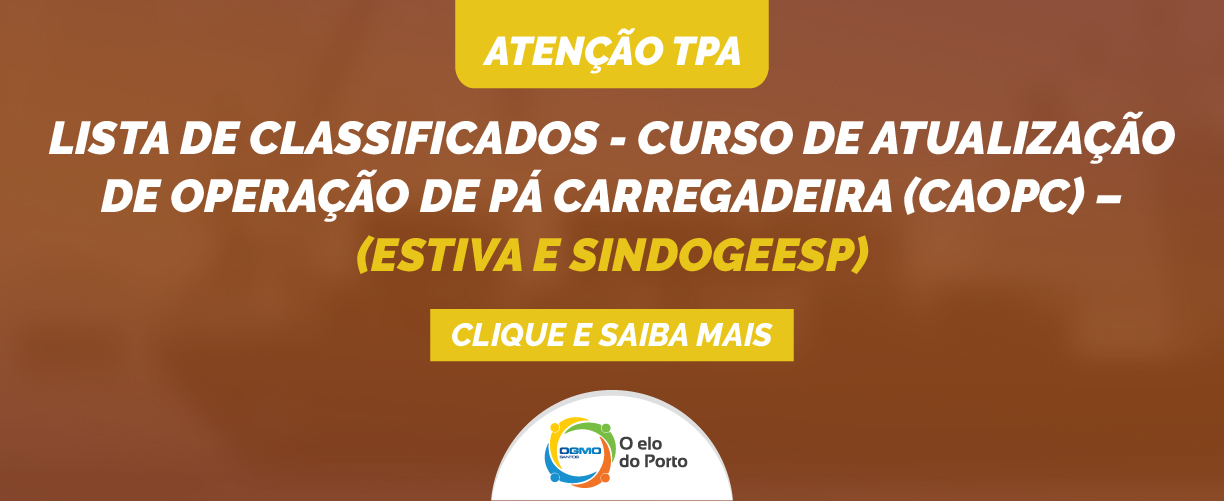 OGMO/Santos: Curso de atualização de operação de pá carregadeira (CAOPC) Lista de classificados – Estiva e SINDOGEESP