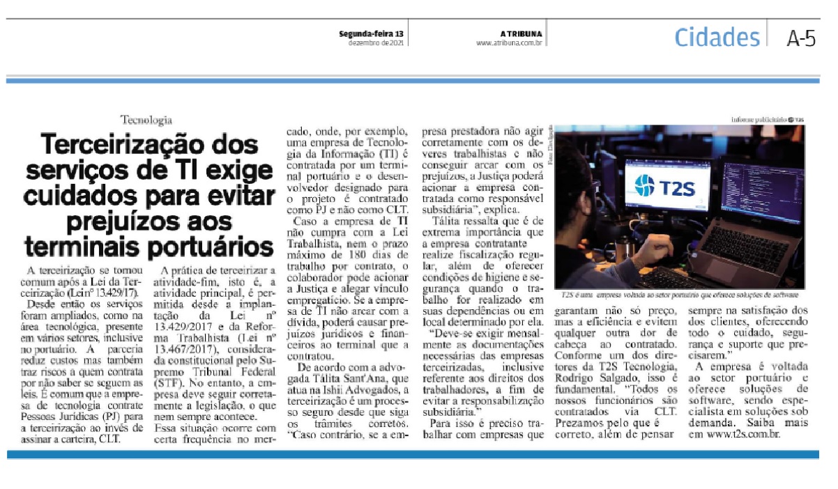 Fonte: Jornal A Tribuna (13 de dezembro de 2021)