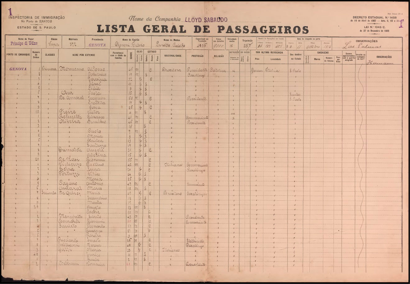 Este costumava ser o primeiro registro de maioria dos imigrantes que chegavam a São Paulo, desde o início do fluxo imigratório após a abolição da escravatura (1888). Além dos nomes dos passageiros, as listas trazem informações valiosas para a busca por dupla cidadania ou pesquisa acadêmica e genealógica, como sexo, idade, profissão, procedência e destino do viajante, além de dados hoje considerados sensíveis, como religião e origem étnica.