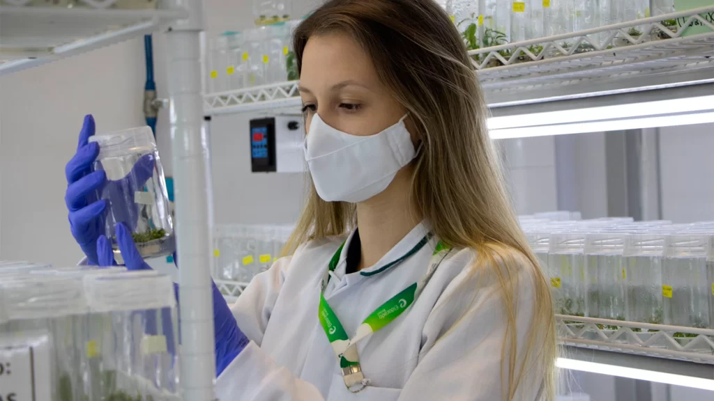 Já a área de biotecnologia florestal auxilia o PMG com a inserção de ferramentas inovadoras e aceleração da obtenção de clones elite a partir da caracterização dos materiais genéticos, garantindo a otimização das estratégias de melhoramento. O objetivo é a redução do tempo necessário à produção de novos clones.