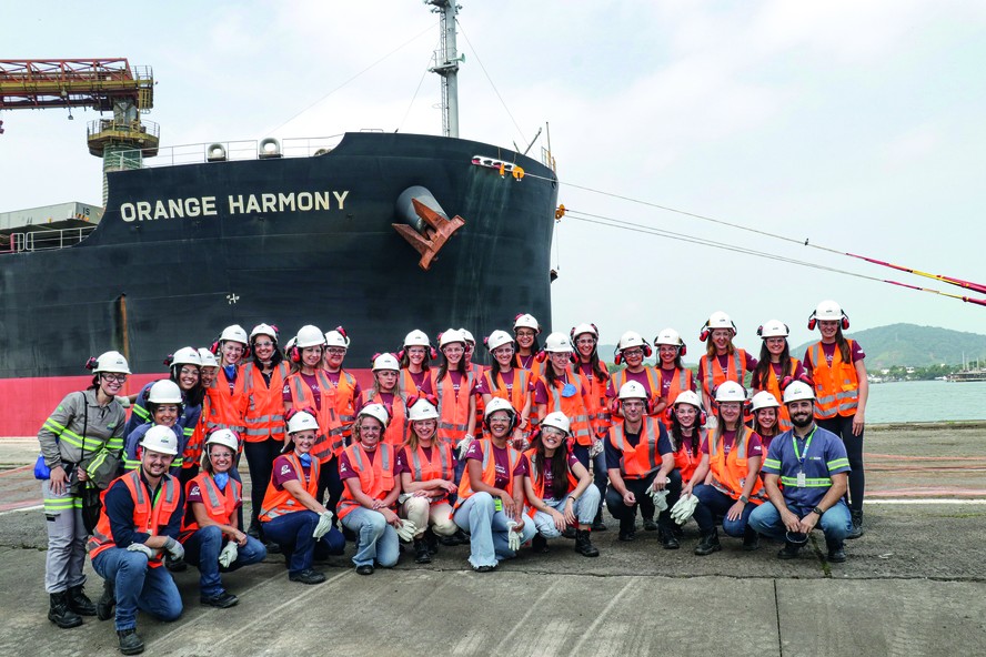 Com as adaptações, a companhia foi ao mercado em 2022 para buscar novos talentos, já que, até então, a ADM Santos já contava com colaboradoras, mas ape- nas nas áreas administrativas. Em janeiro daquele ano (um mês antes de as mulheres entrarem na operação), a unidade contava com 28 colaboradoras. Depois, já com o programa ativo, o número total subiu para 62. “O grande desafio agora é mantê-las. É fazer com que cheguem mais longe, construir com elas uma carreira dentro do porto”, destaca a supervisora.