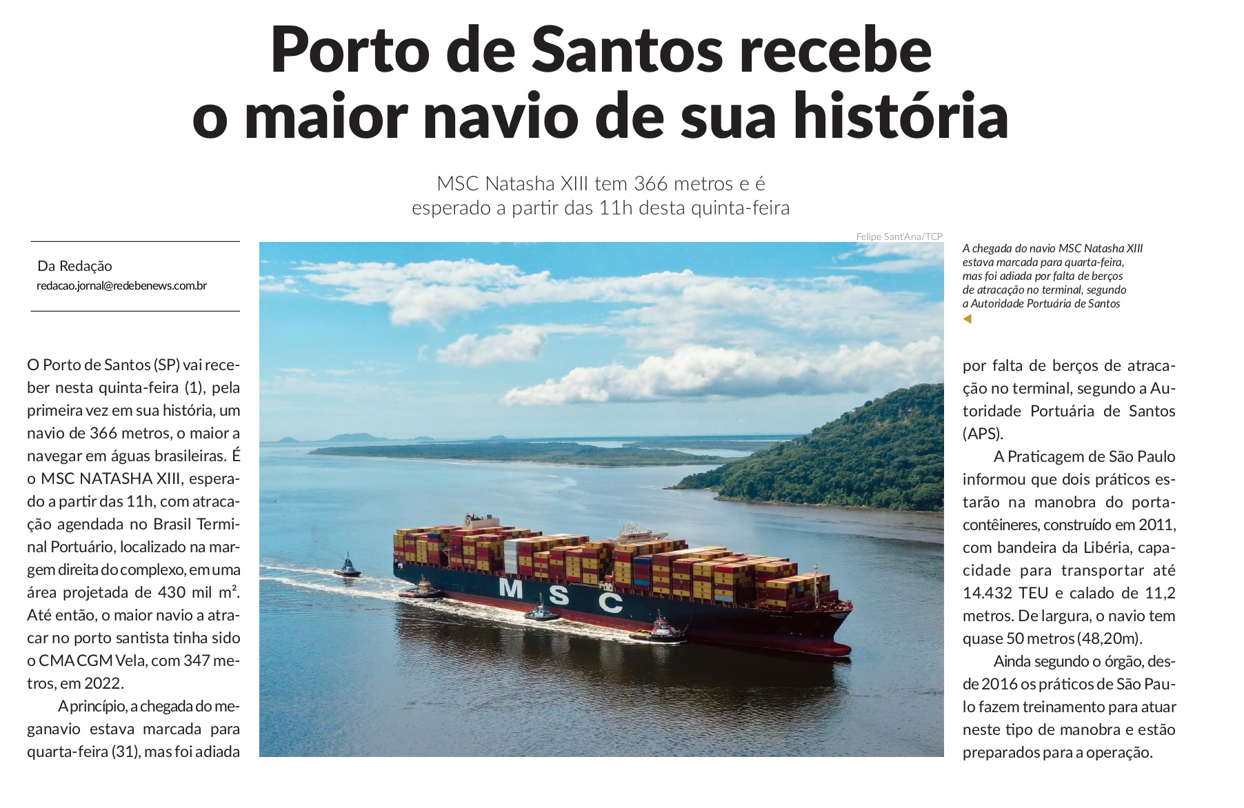 Fonte: Portal BE News (01 de fevereiro de 2024)