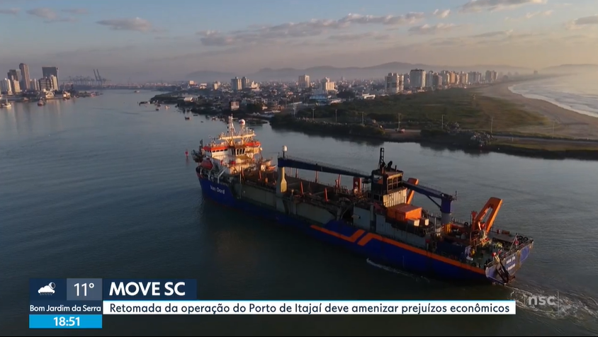 Após um ano e meio, um navio de contêineres voltou a atracar no Porto de Itajaí, no Litoral Norte de Santa Catarina, no fim da tarde deste domingo (7).