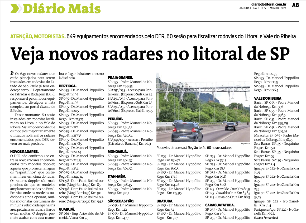Fonte: Diário do Litoral (23 de setembro de 2024)