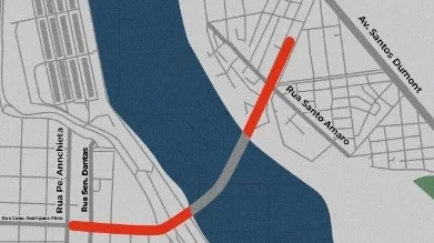 A estrutura terá seis módulos de concreto pré-modulados, construídos em uma doca seca antes de serem “mergulhados” na água. Depois de prontas, as partes da estrutura serão transportadas por flutuação até o local de instalação, no fundo do leito d’água. O trecho vai ligar as regiões de Outeirinhos e Macuco, em Santos, ao bairro Vicente de Carvalho, em Guarujá.