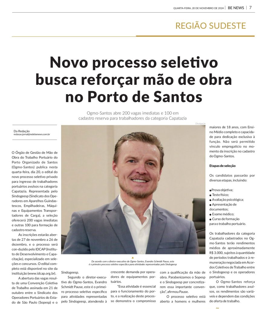 Fonte: Portal BE News (22 de novembro de 2024)