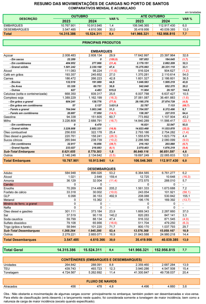 Fonte: Autoridade Portuária de Santos (22 de novembro de 2024)